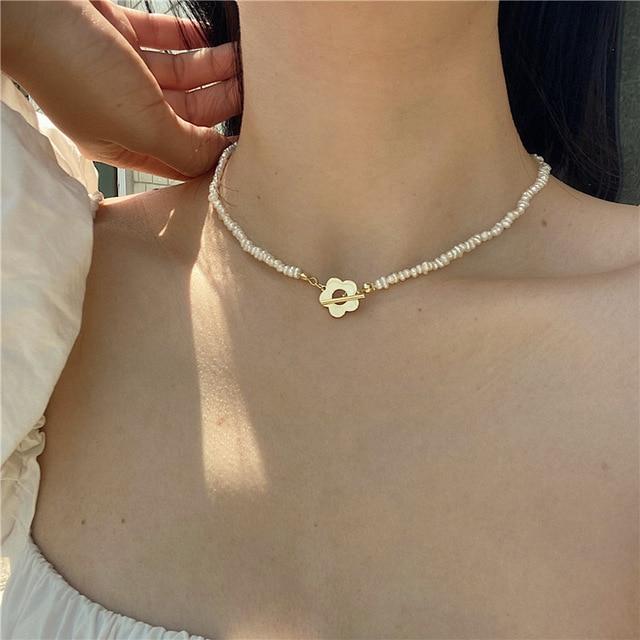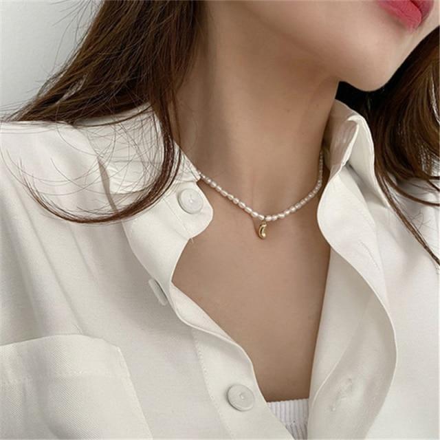 HUANZHI 2020 New Baroque Freshwater Natural Pearl Moonstone Pendant Necklace Geometric Irregular for Women Girls Party Jewelry