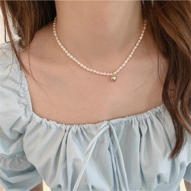 HUANZHI 2020 New Baroque Freshwater Natural Pearl Moonstone Pendant Necklace Geometric Irregular for Women Girls Party Jewelry