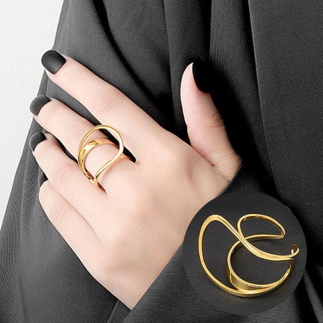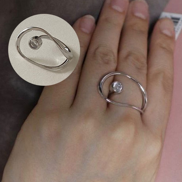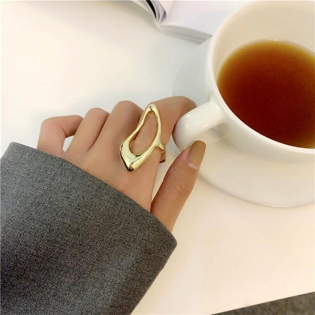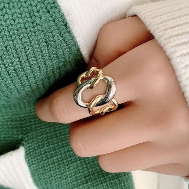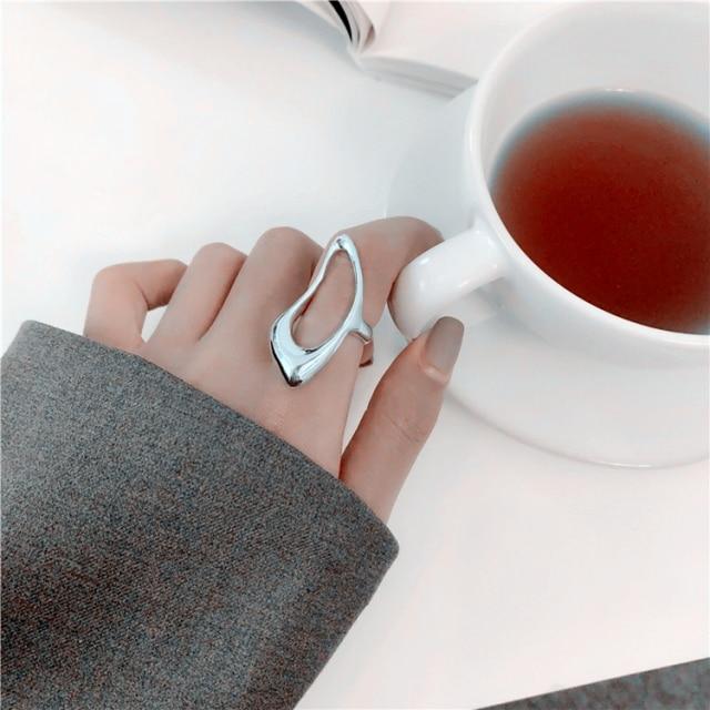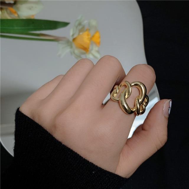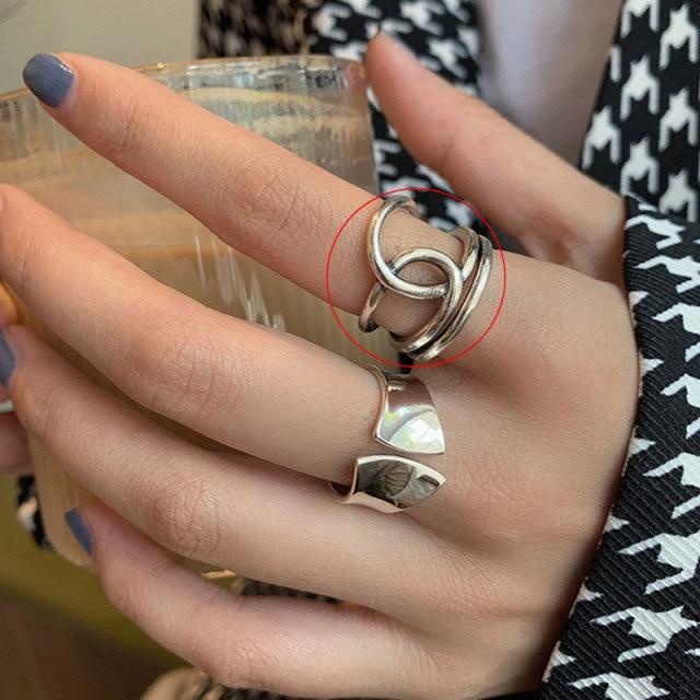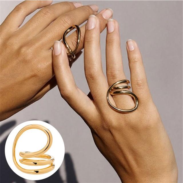 HUANZHI 2020 New Cool Hollow Out Geometry Irregular Distortion Multilayer Cross Twist Metal Ring for Women Girls Party Jewelry