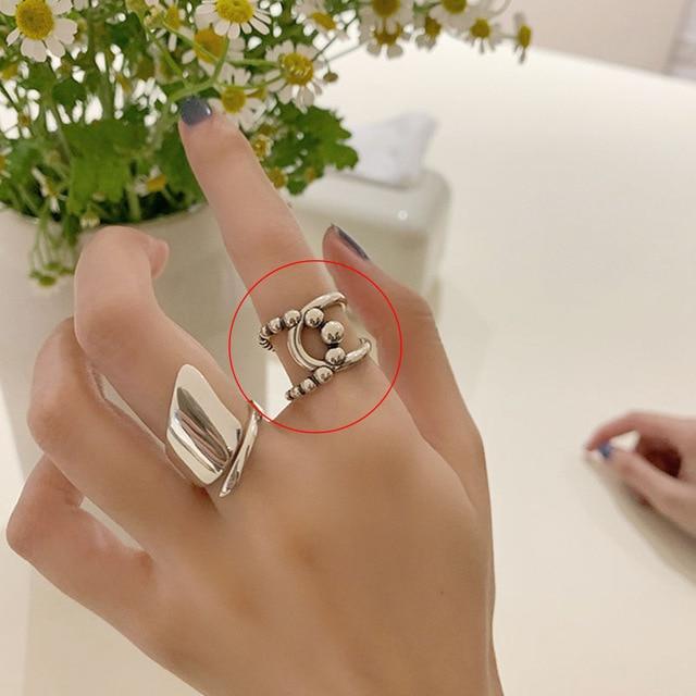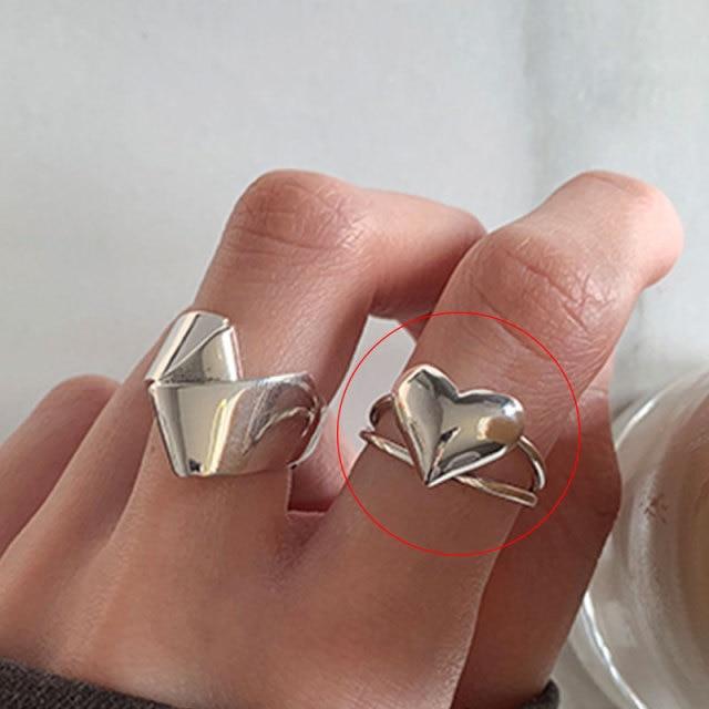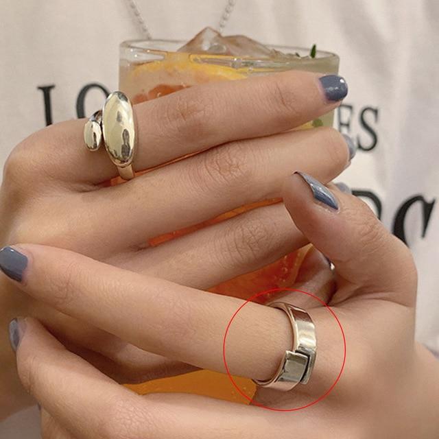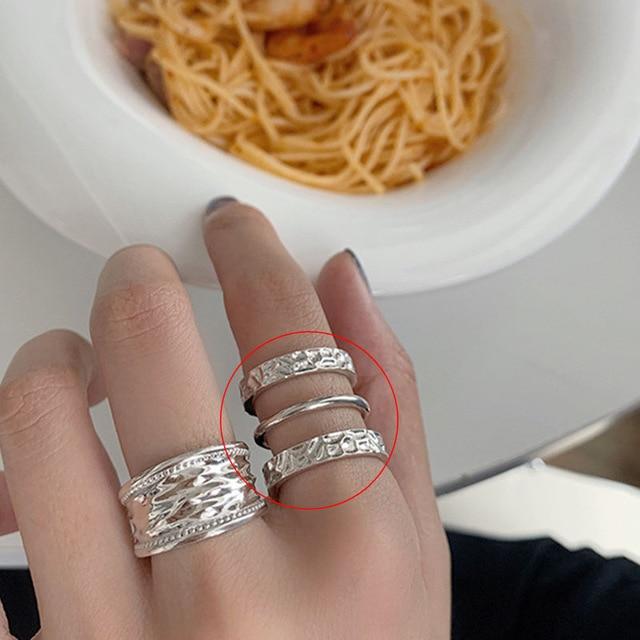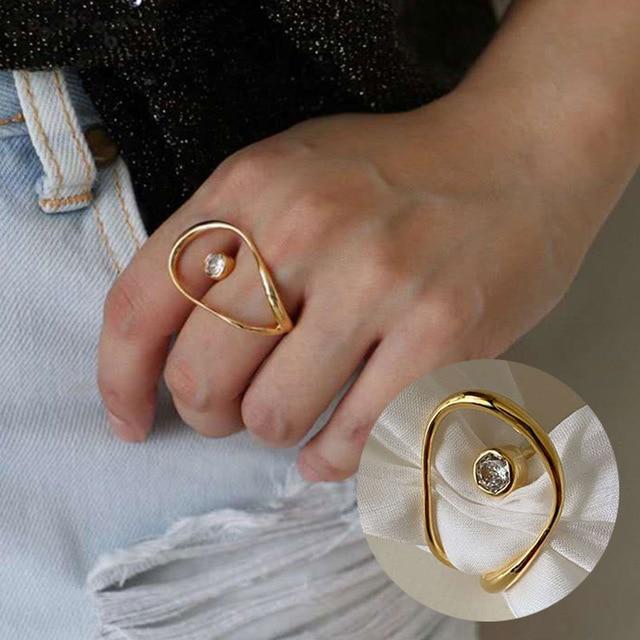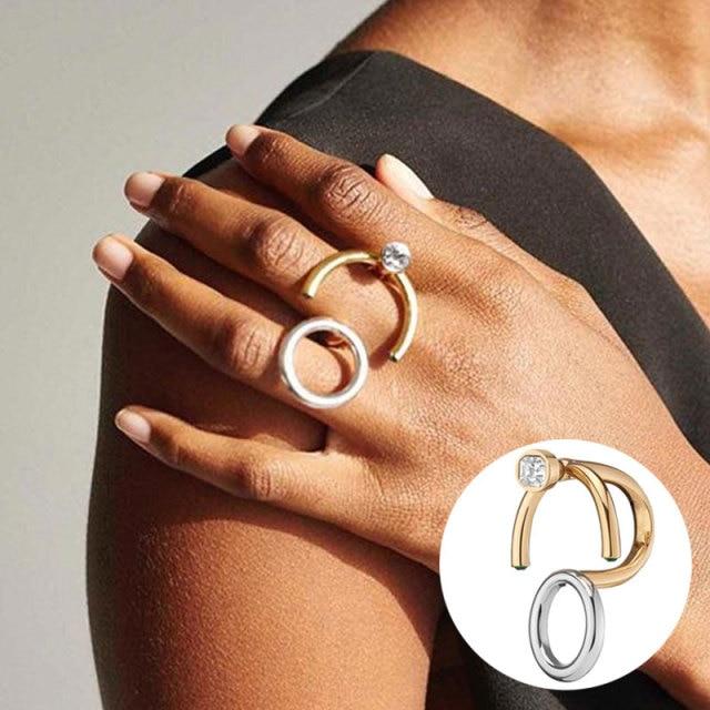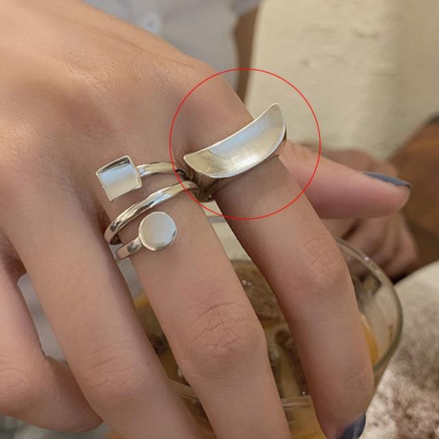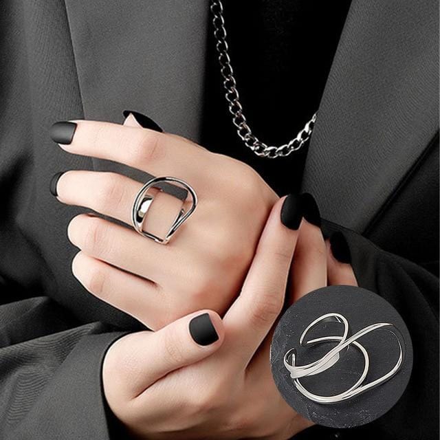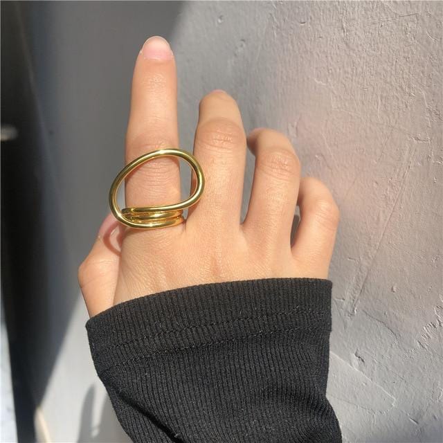 HUANZHI 2020 New Cool Hollow Out Geometry Irregular Distortion Multilayer Cross Twist Metal Ring for Women Girls Party Jewelry