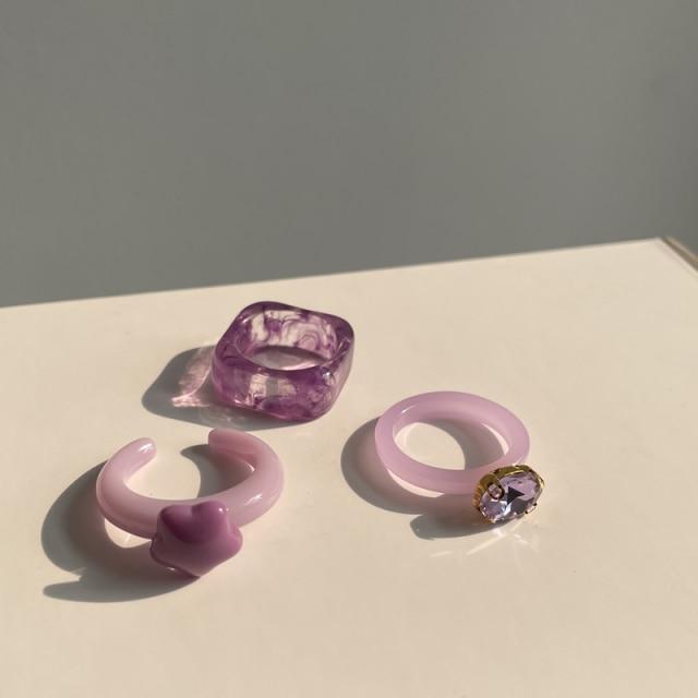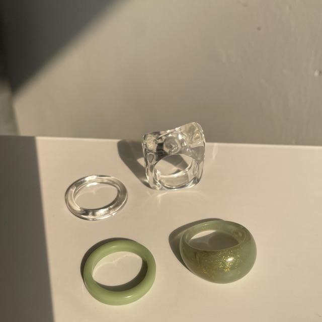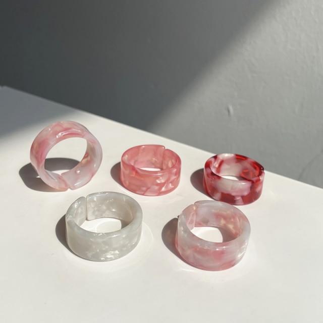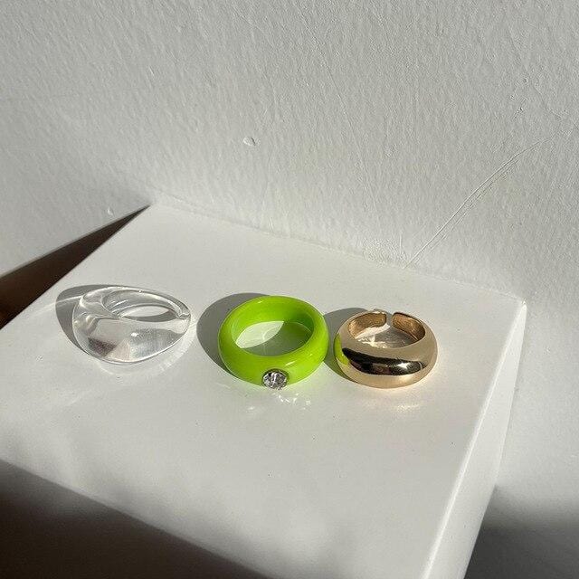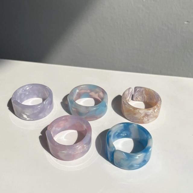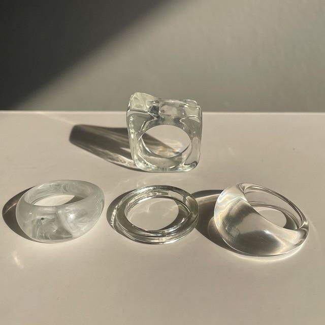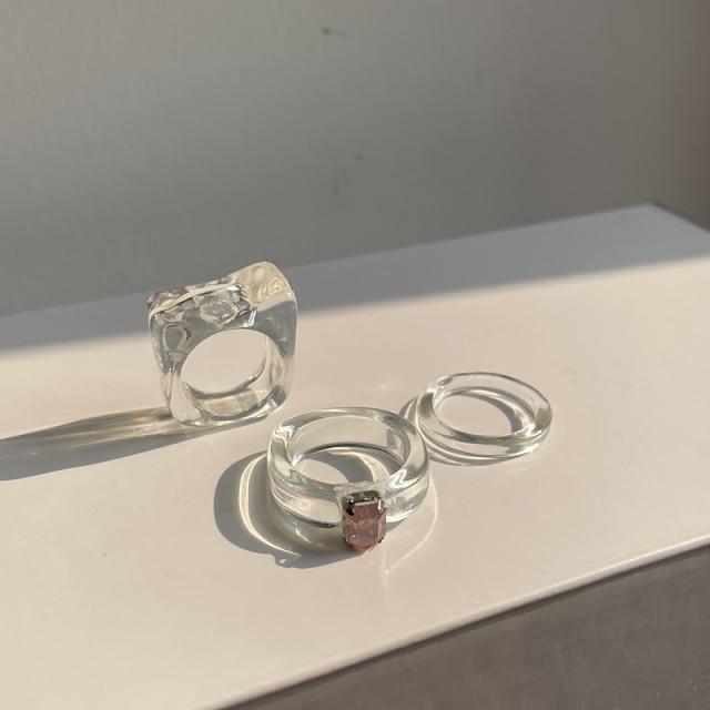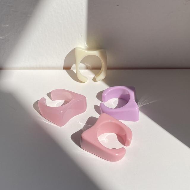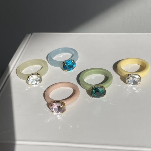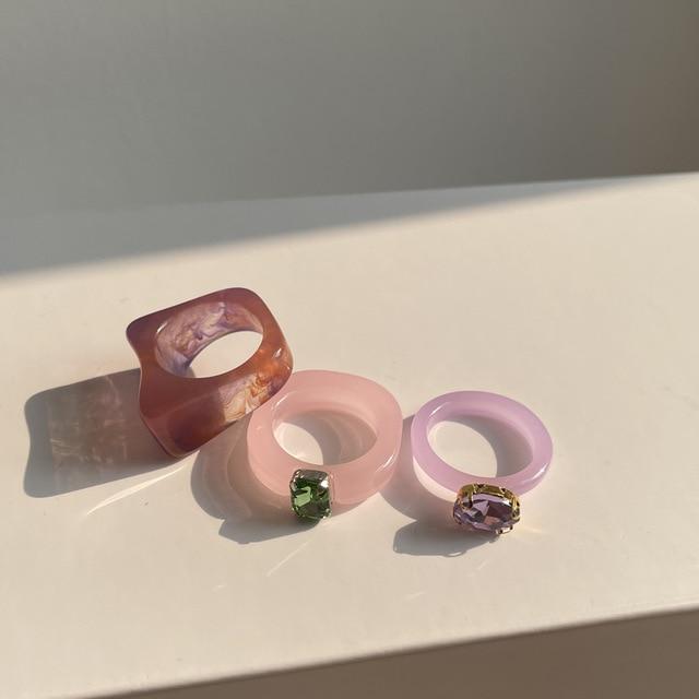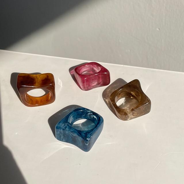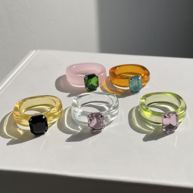 HUANZHI 2020 New Individuality Colorful Transparent Geometric Rectangle Rhinestone Acrylic Rings for Women Vacation Jewelry