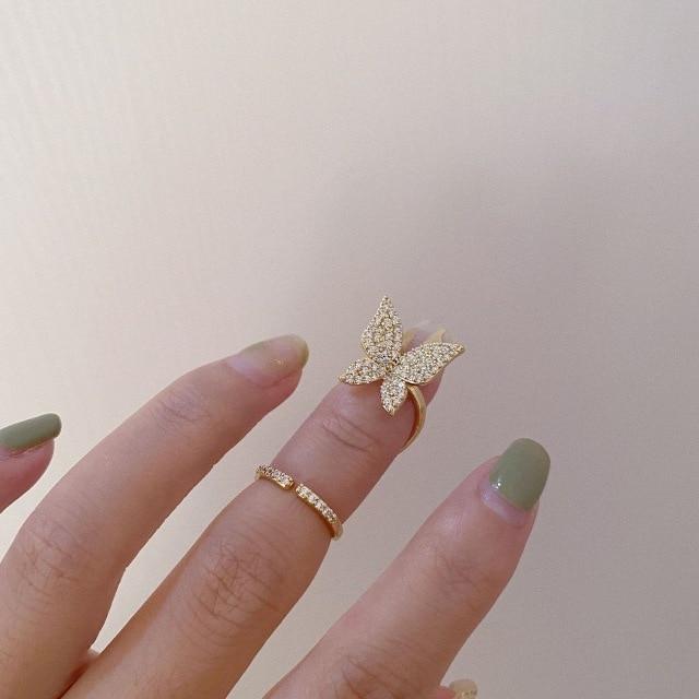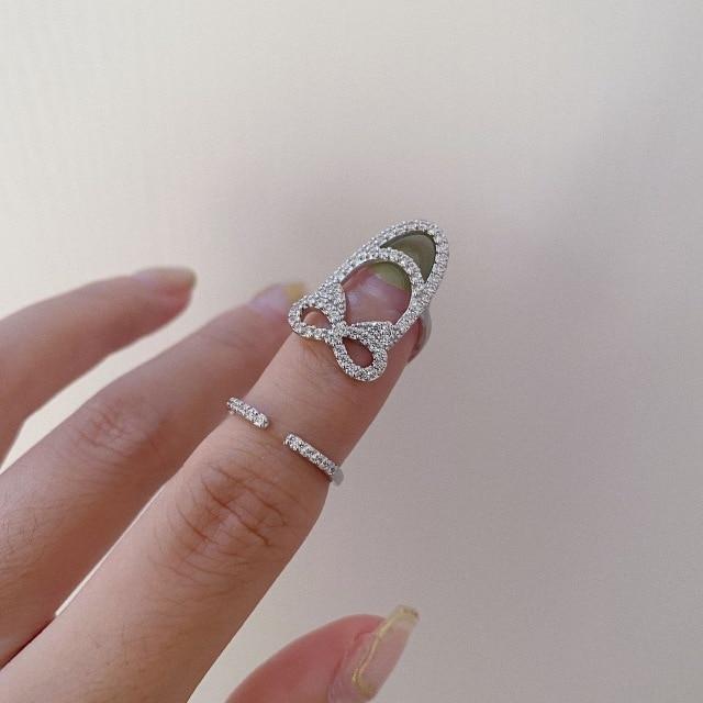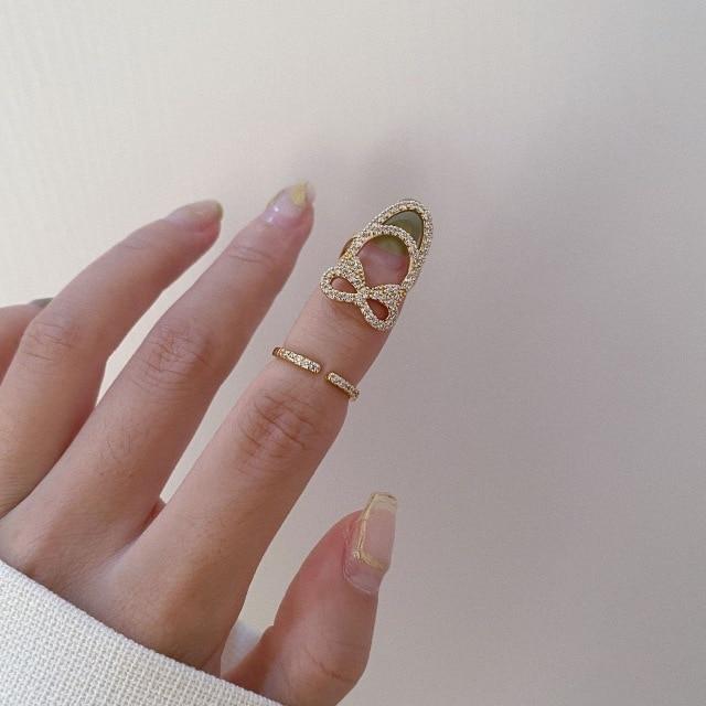 HUANZHI 2020 New Rhinestone Hollow Metal Trendy Cool Fingertip Nail Shining Armor Ring for Women Girls Jewelry Party Accessories