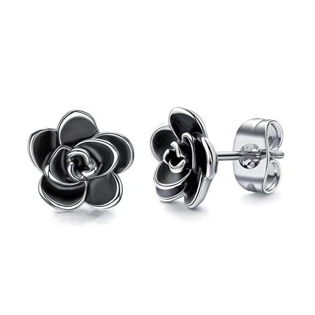 Huian Classic Camellia Flower Stud Earring Delicate Women Accessory Daily Wearing Party Earring with White/Black Flower Jewelry