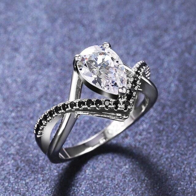 Huitan 2020 luxury Micro Paved Black CZ Stone Wedding Rings For Women Fashion Female Finger Ring Jewelry Dropshipping wholesale