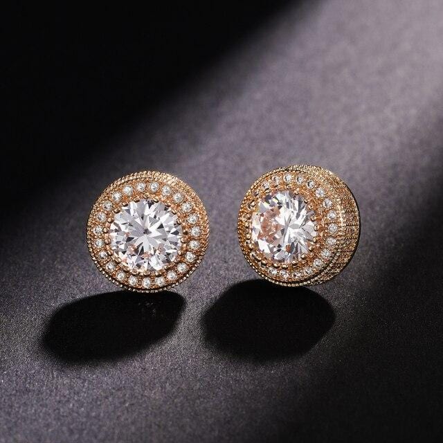 Huitan Brilliant Round Crystal Zirconia Stud Earrings for Women Luxury Bridal Engagement Wedding Party Earrings Timeless Jewelry