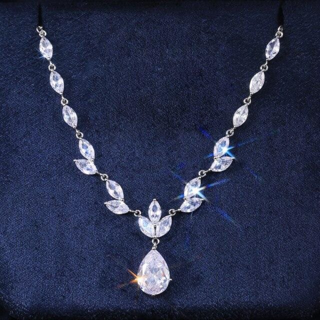 Huitan Classic Big Pear CZ Stone Necklace/Earring Wedding Set for Women Delicate High Quality Zircon Lady Party Wear Jewelry Hot