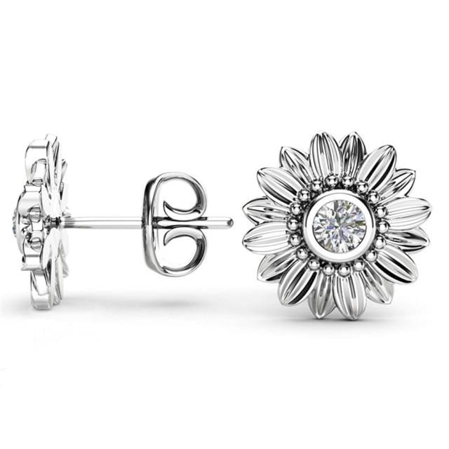 Huitan Cute Sunflower Stud Earrings with Daisy Design Clear Cubic Zirconia Prong Setting Fashion Party Earrings for Women Girls