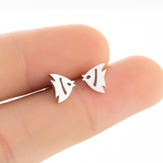 Huitan Fashion Geometric Trumpet Women's Earrings Stainless Steel Animal Cat Fish Snake Ghost Wedding Party Jewelry Hot Sale