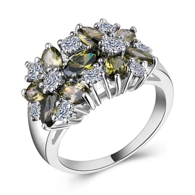 Huitan Hot Sale Cocktail Party Ring Flower Cubic Zirconia Valentine's Day Gift Fashion Jewelry Luxury Rings for Women & Lover