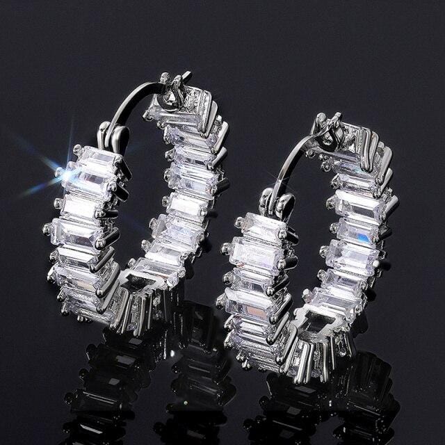 Huitan Korean Fashion Women Hoop Earrings Pear Cut Cubic Zirconia Crystal Delicate Girl Party Accessories Birthday Gift Earrings