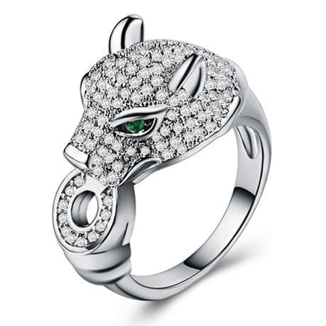 Huitan Leopard Head Inlaid Women Rings Hip Hop Animal Group Party Punk Finger Ring Jewelry Personality Fashion Gift New Style