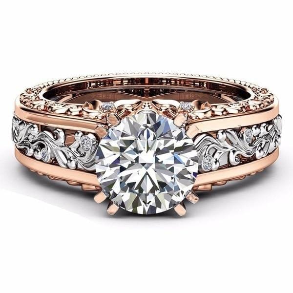 HUITAN Luxury Flower Ring For Women With 10mm Round Cut Cubic Zirconia Romantic Wedding Engagement Rings Jewelry #5-12 Size
