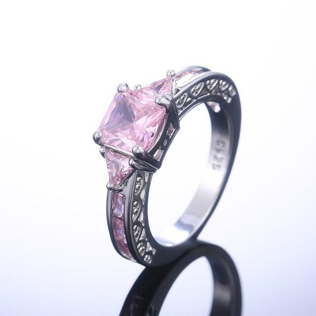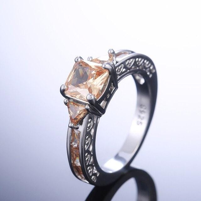 Huitan Luxury Princess Cut Cubic Zirconia Wedding Rings Women Simple Elegant Design Anniversary Gift Party Female Trendy Jewelry