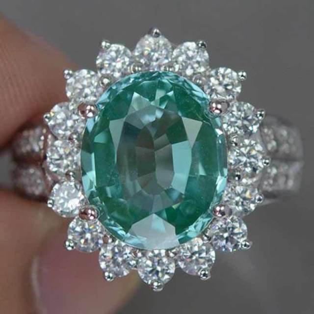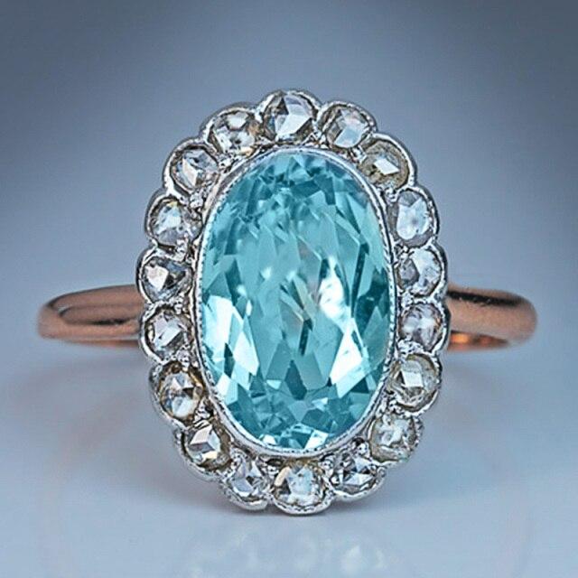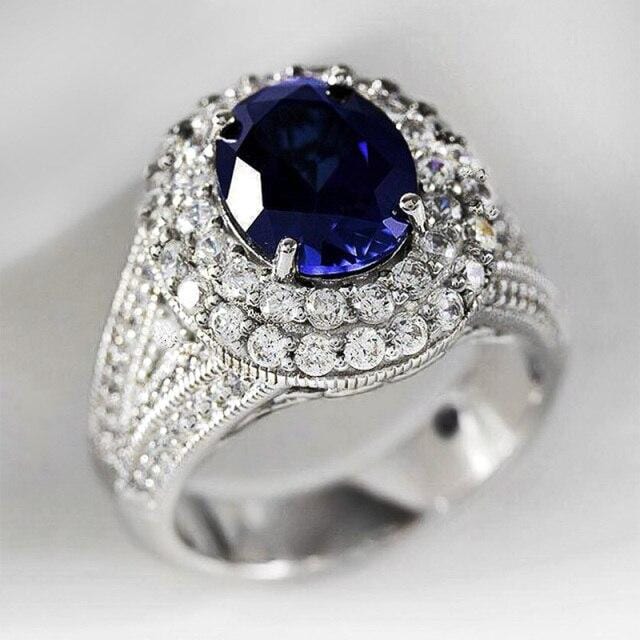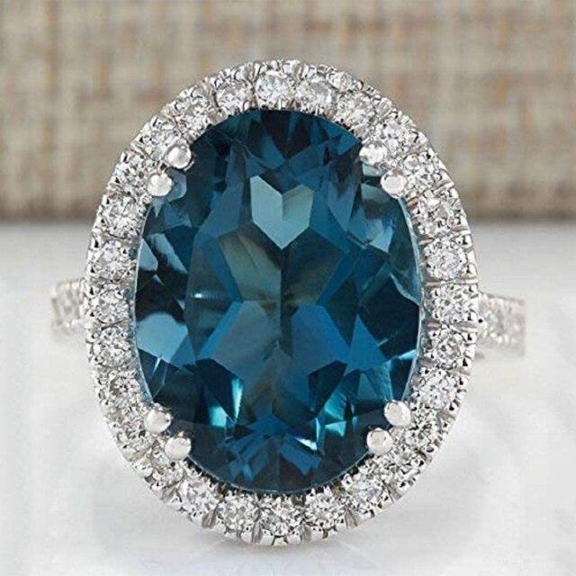 Huitan Luxury Silver Color Big Blue CZ Rings Women Brilliant Bridal Wedding Engagement Party Ring Simple Aesthetic Jewelry Newly