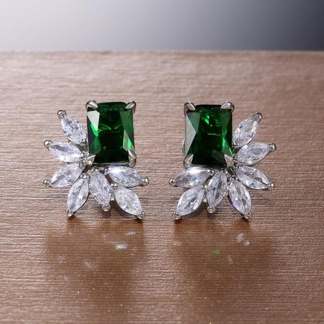 Huitan Luxury Square with Marquise CZ Stone Women Stud Earrings for Party 3 Colors Delicate Gift Dazzling Lady's Wedding Jewelry