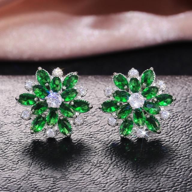 Huitan New Arrival Gorgeous Big Flower Stud Earring for Women Wedding Engage Dance Party Noble Brilliant Zircon Stone Earrings