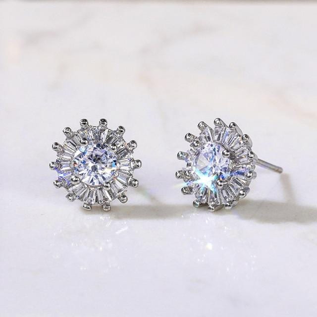 Huitan Newly Cute Stud Earrings Women Shiny White Cubic Zirconia Delicate Daily Wear Party Jewelry High Quality Pierced Earrings
