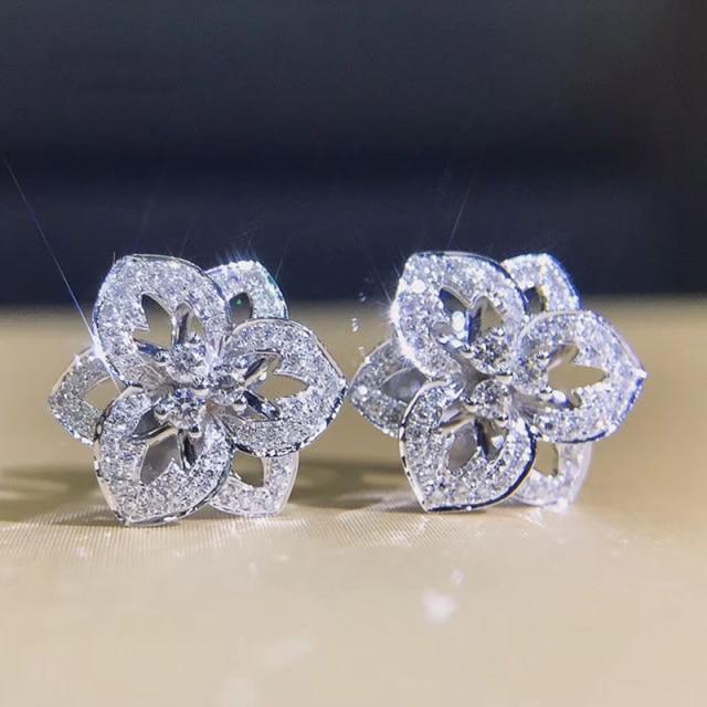 Huitan Romantic Women's Flower Earrings Silver Color/Rose Gold Color Available Holiday Stud Earrings Party Fashion Jewelry Gifts