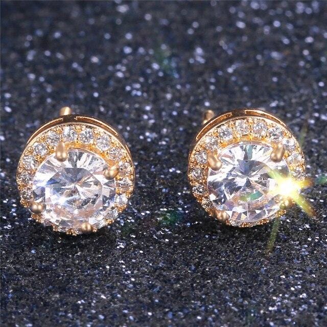 Huitan Round/Square White Zirconia Stud Earring Women/Men Geometric Accessories Versatile Daily Unisex Earring Party Jewelry Hot