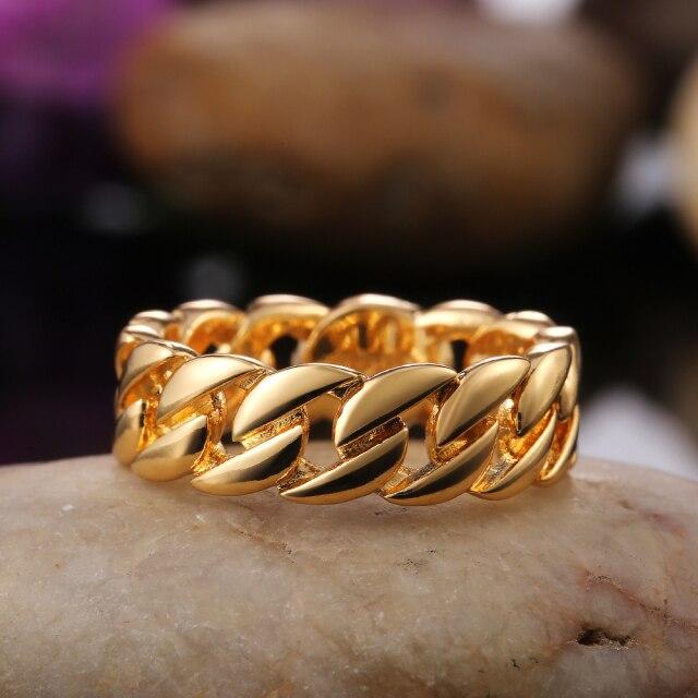 Huitan Simple Stylish Chain Design Finger-rings for Women/Men Hiphop Rock Style Good Quality Link Rings Trendy Jewelry Size 7-12