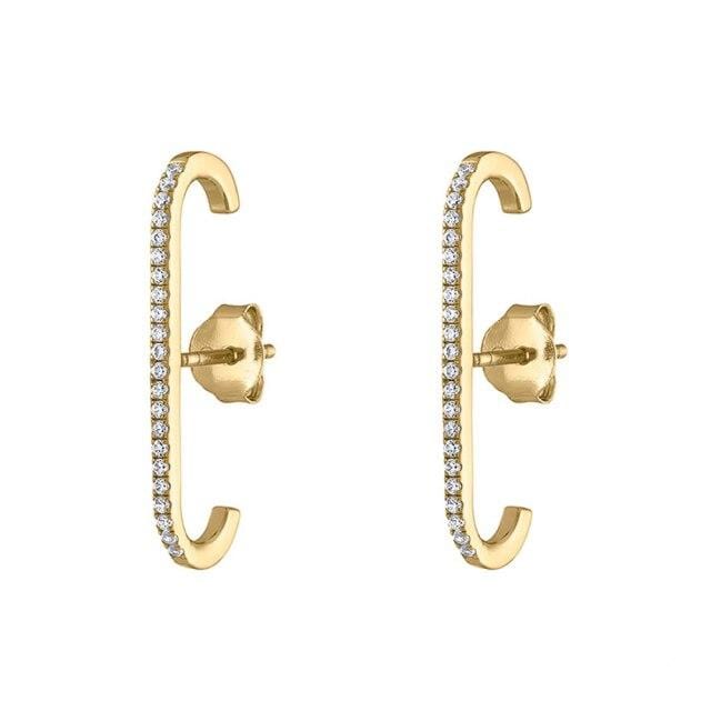 Huitan Simple Stylish Geometric Shape Women Stud Earrings Shiny Crystal CZ Stone Wedding Party Jewelry Exquisite Gift for Female
