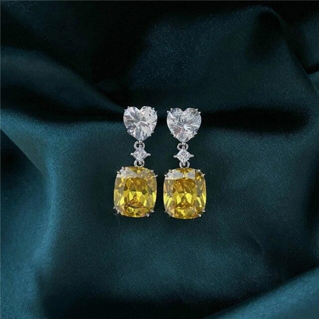 Huitan Unique Pink/Yellow/White CZ Earrings Stylish Noble Lady's Party Dangle Earring Wedding Anniversary Gift Aesthetic Jewelry