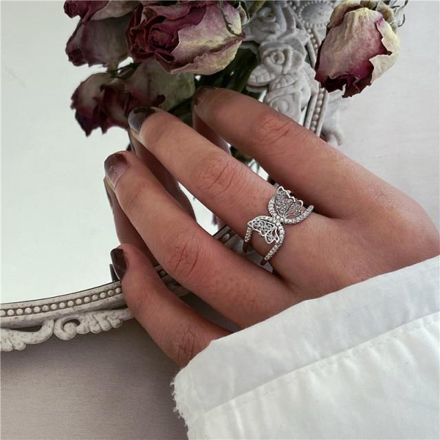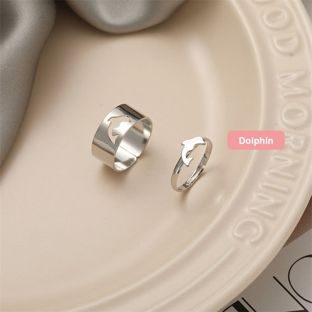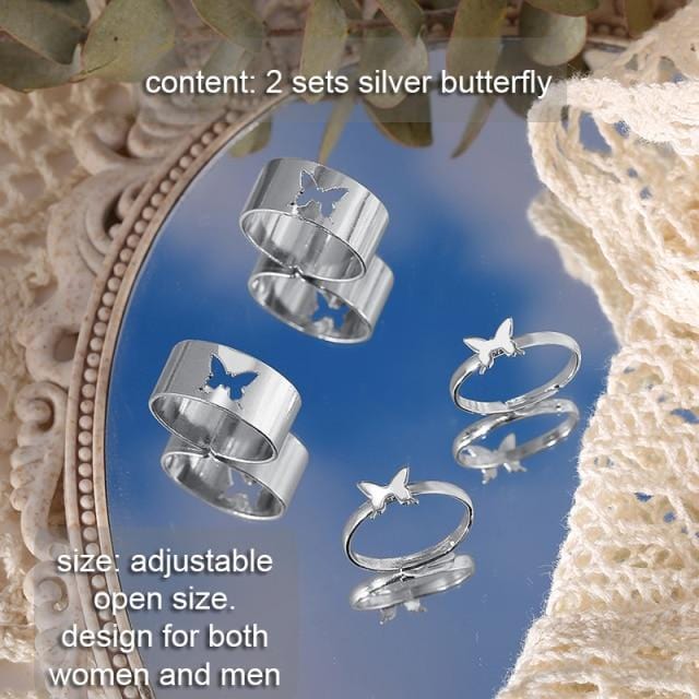 IF ME 2 Paired Butterfly Couple Adjustable Opening Ring Set for Women Men Unisex Gold Silver Color Metal Rings Trendy Jewelry