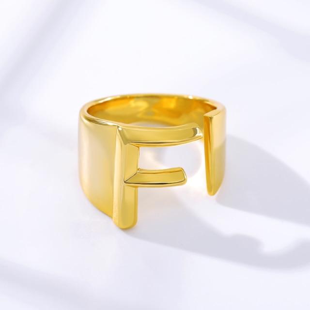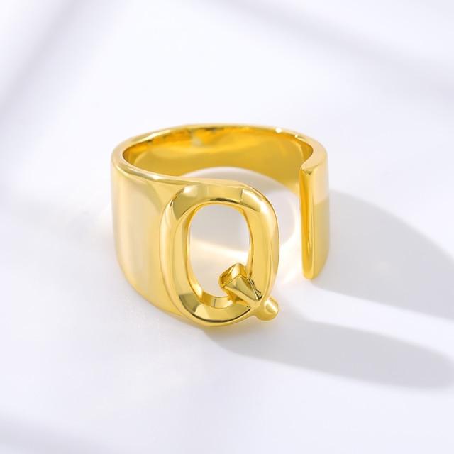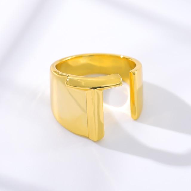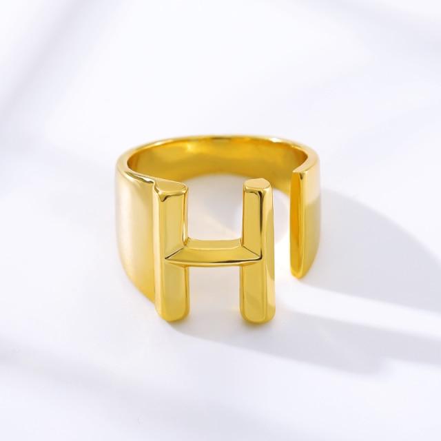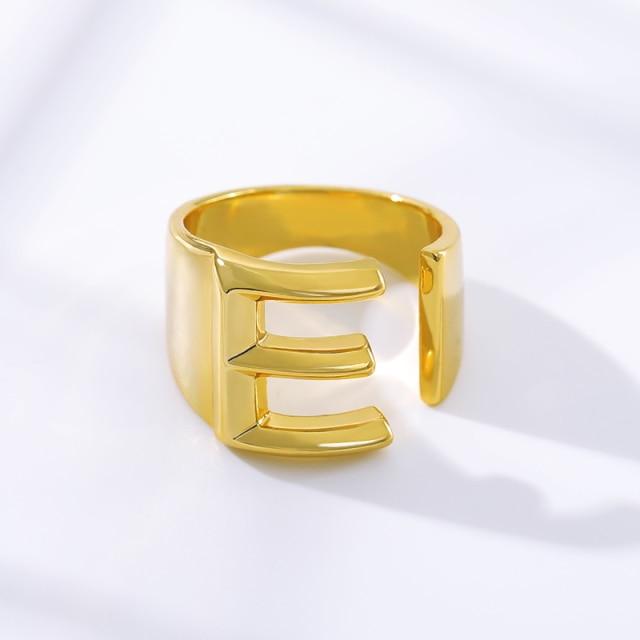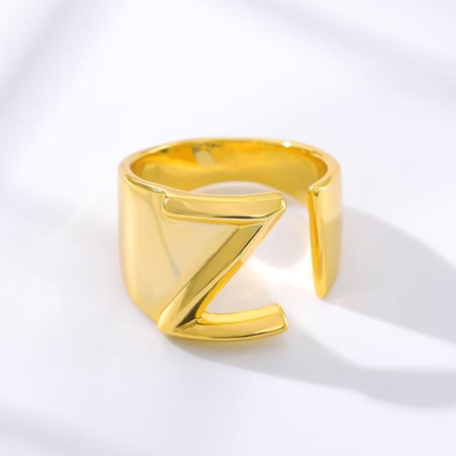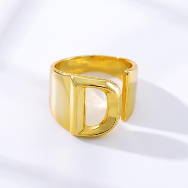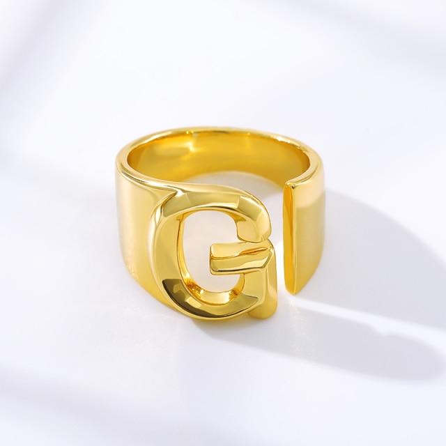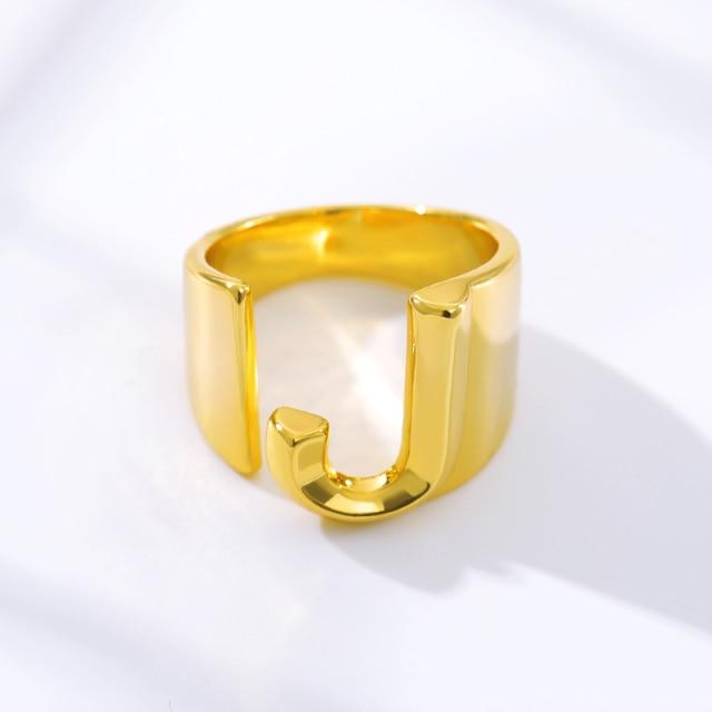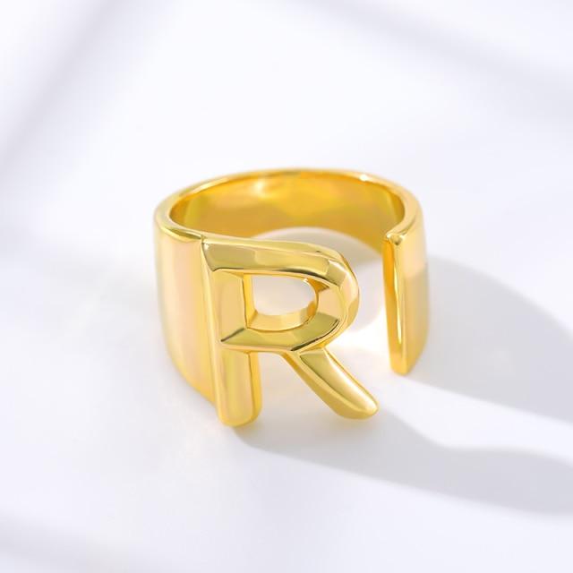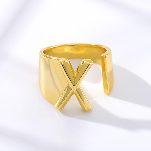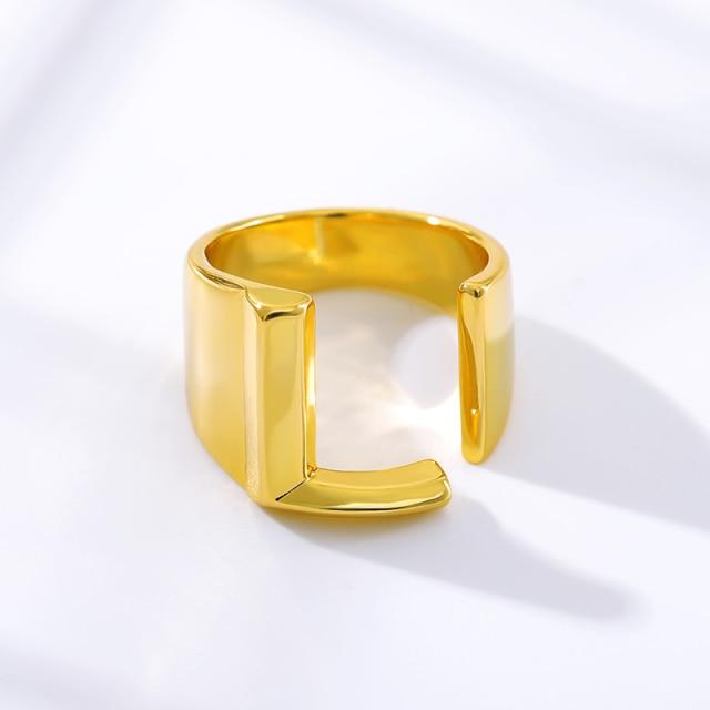 Initial A-Z Letter Rings For Women Stainless Steel Gold Alphabet Name Adjustable Finger Ring Jewelry Gift Bijoux Femme Chunky