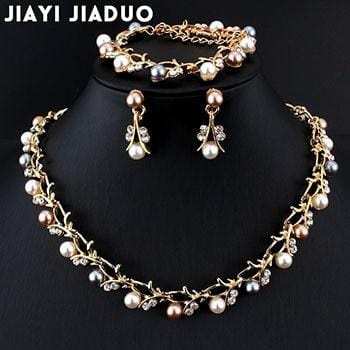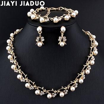 Jiayijiaduo Hot Imitation Pearl Wedding Necklace Earring Sets Bridal Jewelry Sets for Women Elegant Party Gift Fashion Costume
