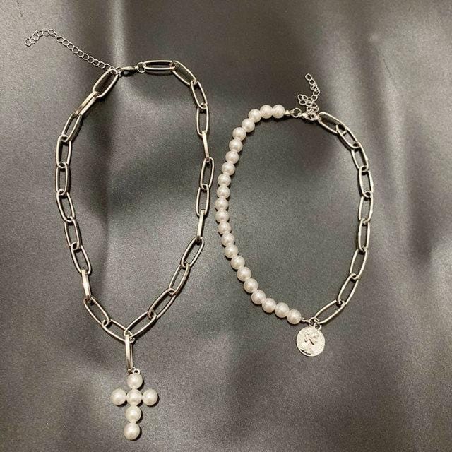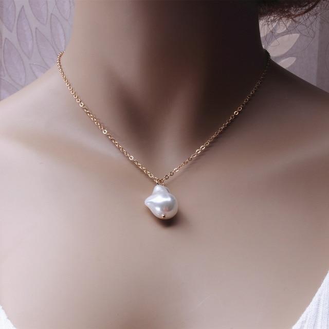 KMVEXO Fashion 2 Layers Pearls Geometric Pendants Necklaces For Women Gold Metal Snake Chain Necklace New Design Jewelry Gift