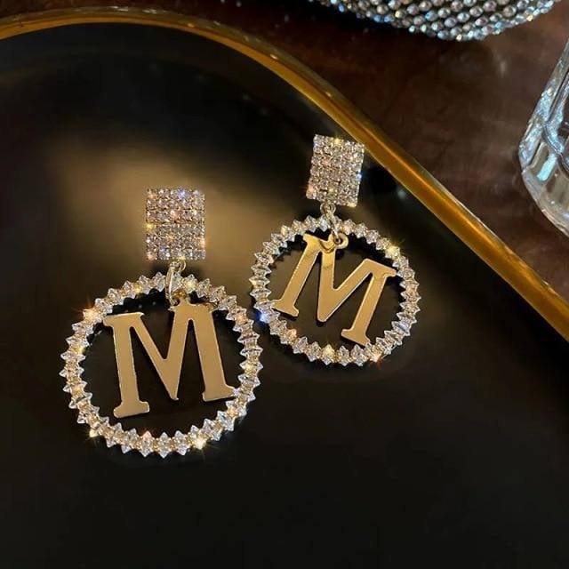 Korea 2021 New Luxury The Letter M Crystal Pendant Earrings for Women Fashion Exquisite Flower Earrings Party Jewelry Gifts