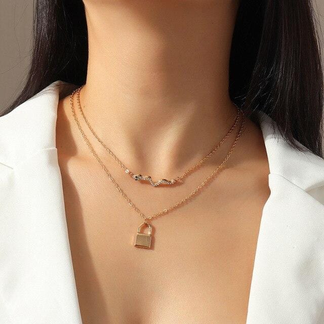 Korean Fashion Mixed Bead Pearl Necklace for Women Creative Gold Double Thick Link Chain Neckalce Heart Pendant Jewelry Gift