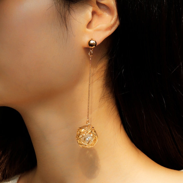 Korean Long Earrings For Women 2019 Fashion Jewelry Geometric Heart Crystal Women's Earring Brincos Gold Hanging Dangle Earring