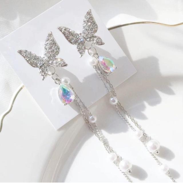 Korean Shiny Butterfly Crystal Drop Earrings For Women Elegant Pearl Tassel Dangle Earring 2020 Brincos Female Fashion Jewelry