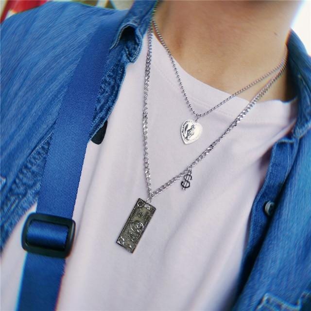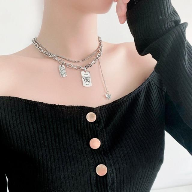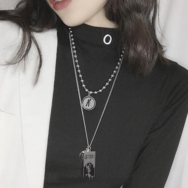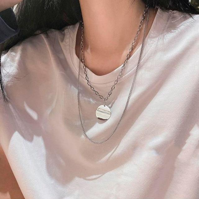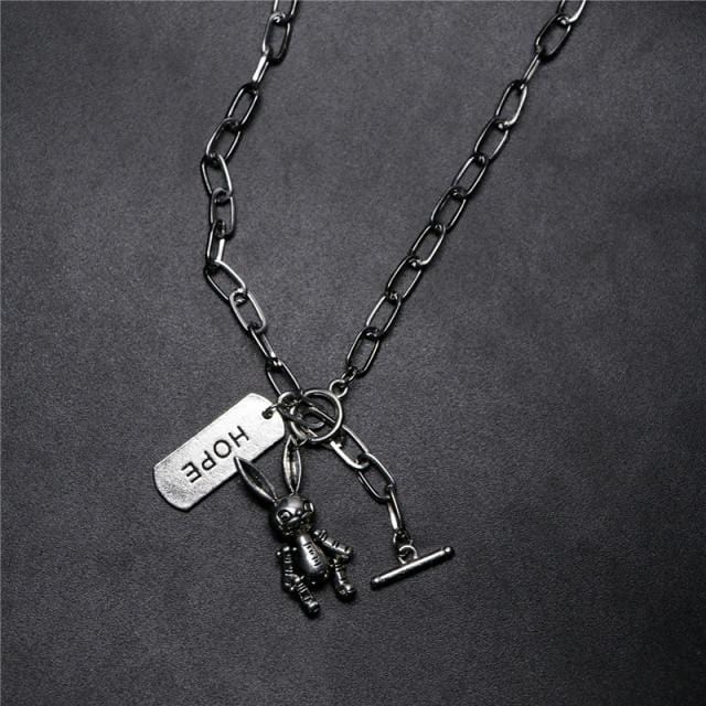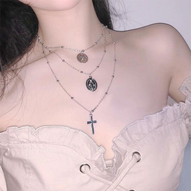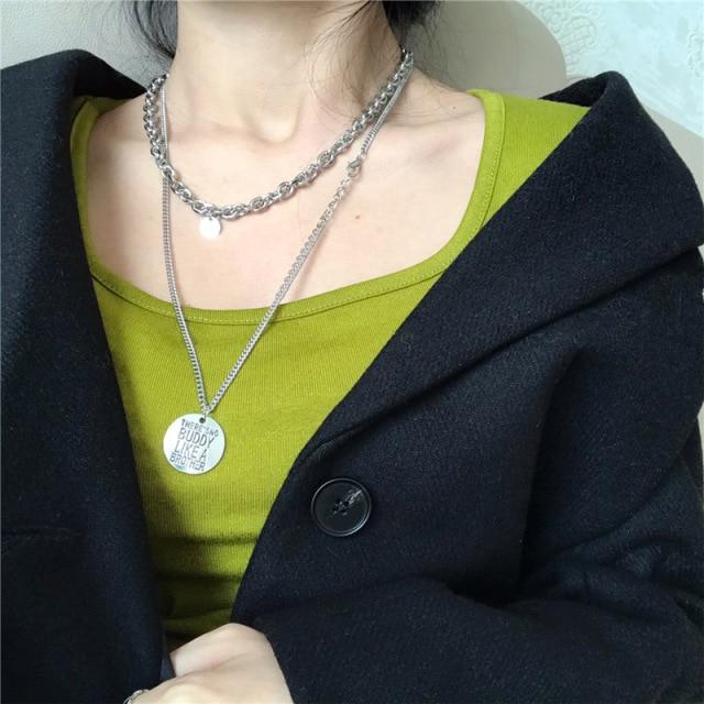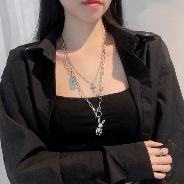 LATS 2021 Fashion Multilayer Hip Hop Long Chain Necklace for Women Men Jewelry Coin Rabbit Cross Pendant Necklace Accessories