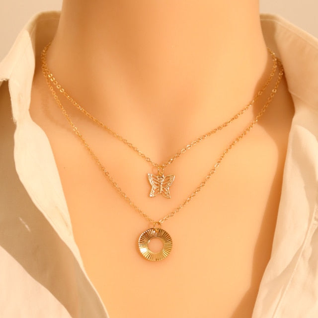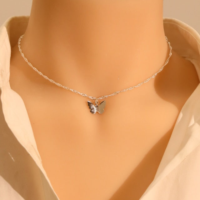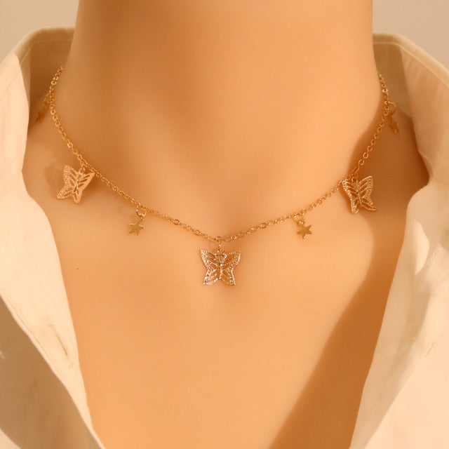 LATS Gold Silver Color Chain Pendant Butterfly Necklace for Women Layered Charm Choker Necklaces Boho Beach Jewelry Gift Cheap