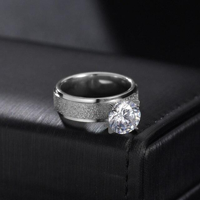 Letdiffery 8mm Bling Crystal Wedding Rings for Couple Golden Stainless Steel Women Ring Sets Men Lovers Jewelry Engagement Gift