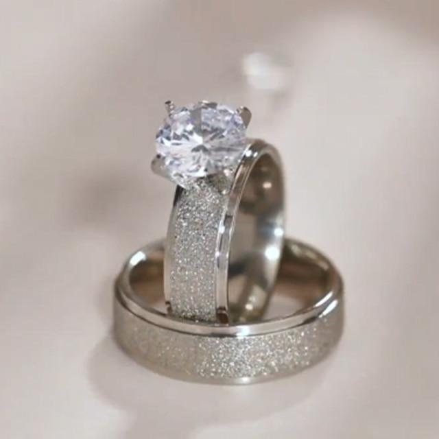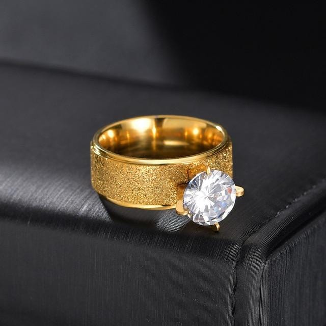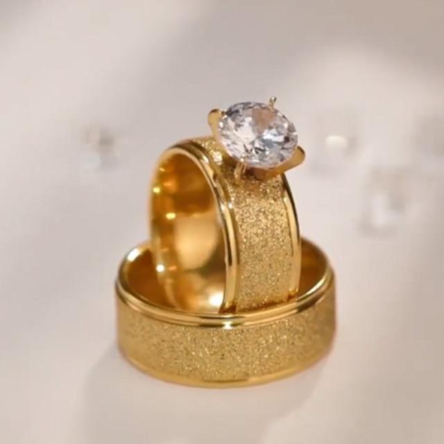 Letdiffery 8mm Bling Crystal Wedding Rings for Couple Golden Stainless Steel Women Ring Sets Men Lovers Jewelry Engagement Gift