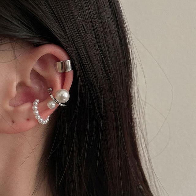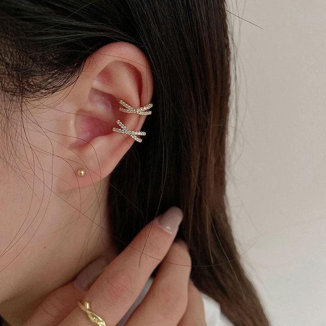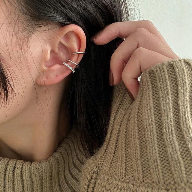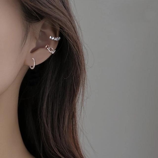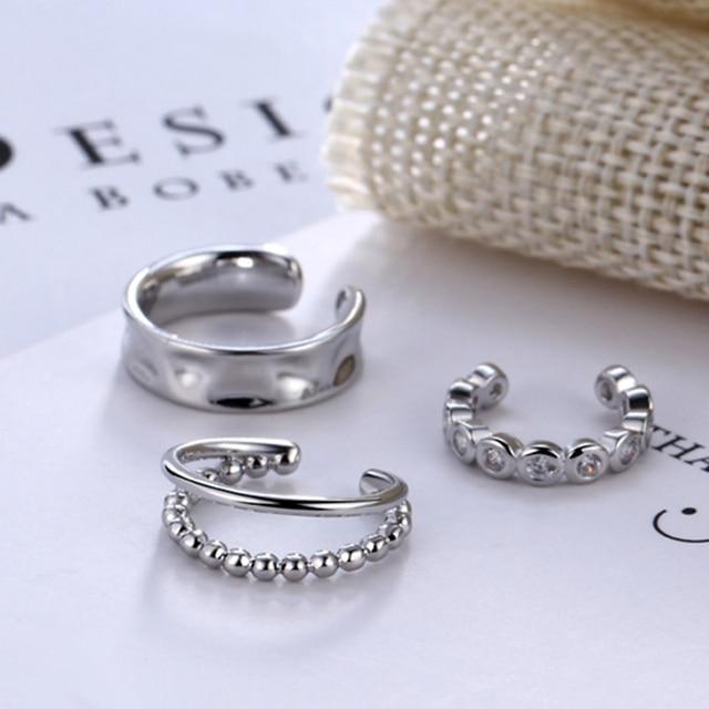 LISM 3Pcs/Set Silver Color Korean Design Zircon Geometric Earrings Female Double Twist Without Pierced War Clip Ear Cuff