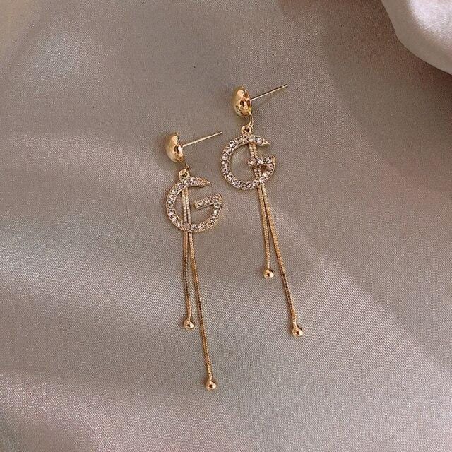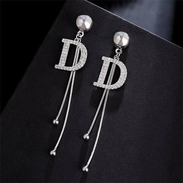 Long Tassel Crystal Letter D Pendant Earrings for Women 2021 New Korean Statement Earring Girl Party Jewelry Accessories Gifts
