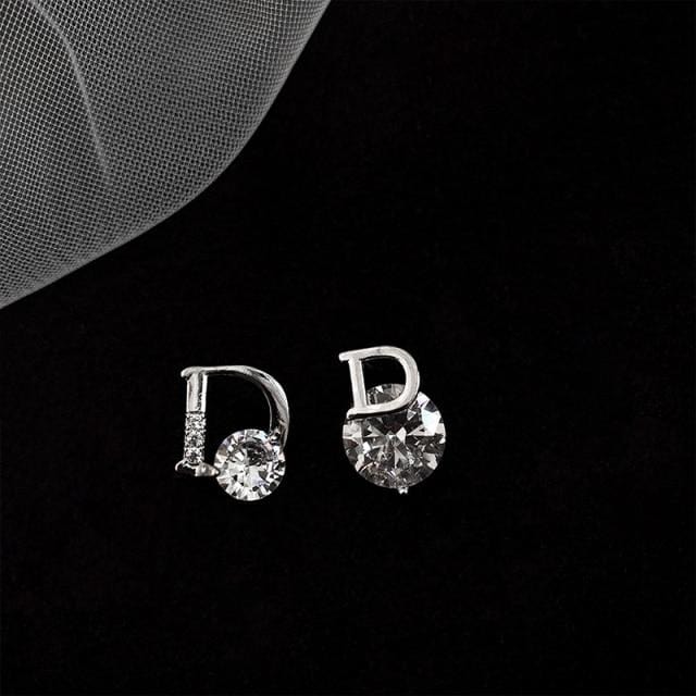 Luxury Shiny Zircon Gold D Letter Asymmetric Earrings For Woman Fashion Korean Jewelry 2021 New Party Girls Sexy Unusual Earring