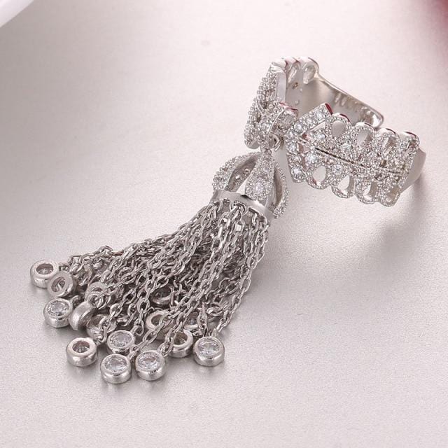 LXOEN Luxury Party Famous Brand Tassel Rings For Women Inlay Cubic Zirconia Adjustable Crown Ring Famous Brand Fashion bague