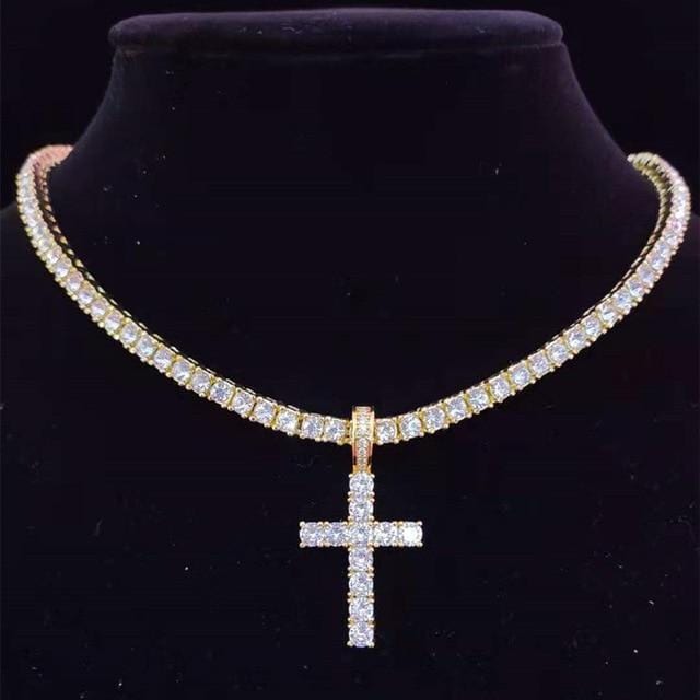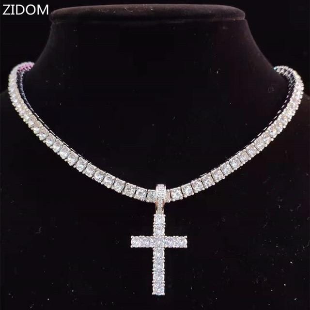 Men Women Hip Hop Cross Pendant Necklace with 4mm Zircon Tennis Chain Iced out Bling Necklaces HipHop Jewelry Fashion Gift