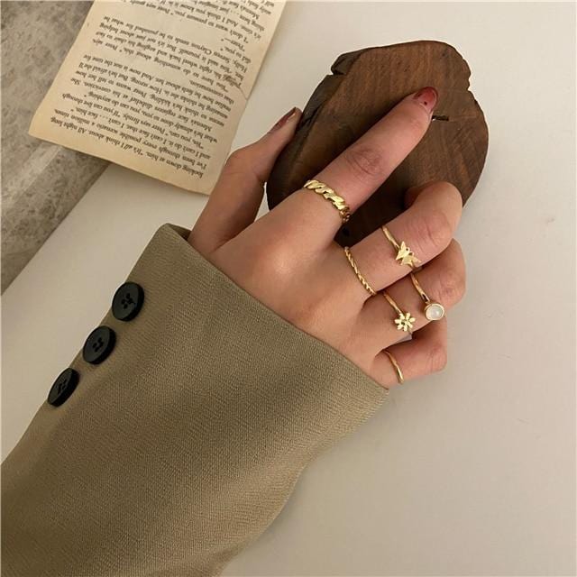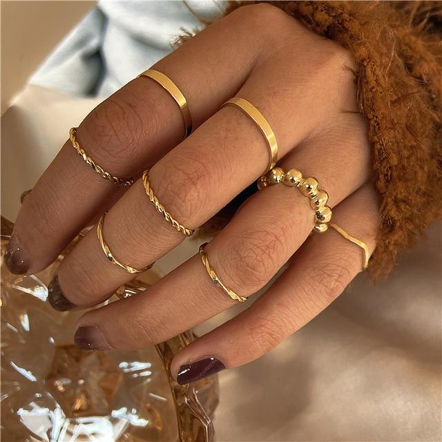 Minimalism Gold Color Round Geometric Finger Rings Set for Women 2021 Classic Circle Open Ring Joint Ring Female Jewelry