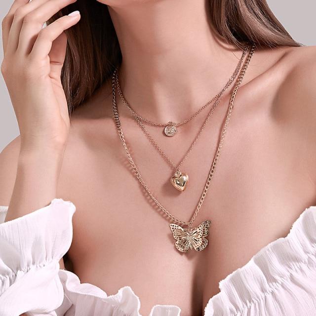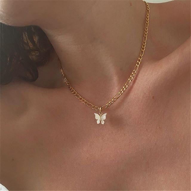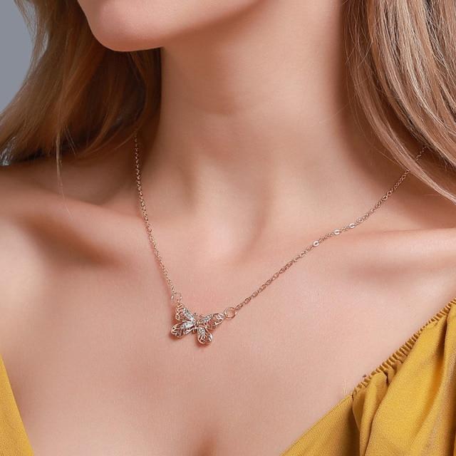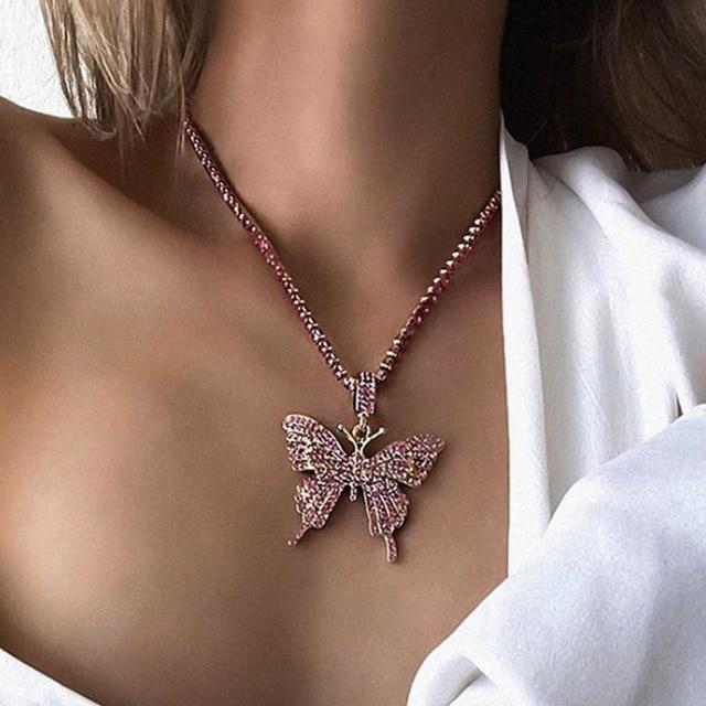 Modyle Women Jewelry Butterfly Pendant Necklace Female Rhinestone Shining Statement Crystal Charm Choker Necklace for Woman Gift