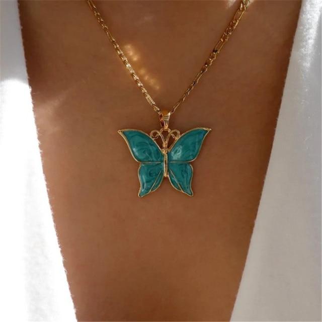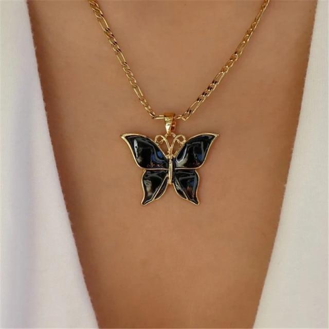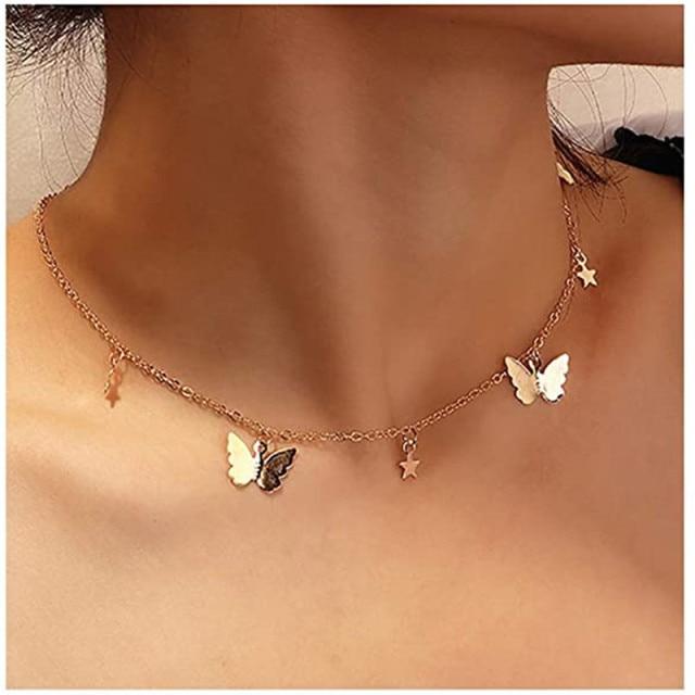 Modyle Women Jewelry Butterfly Pendant Necklace Female Rhinestone Shining Statement Crystal Charm Choker Necklace for Woman Gift