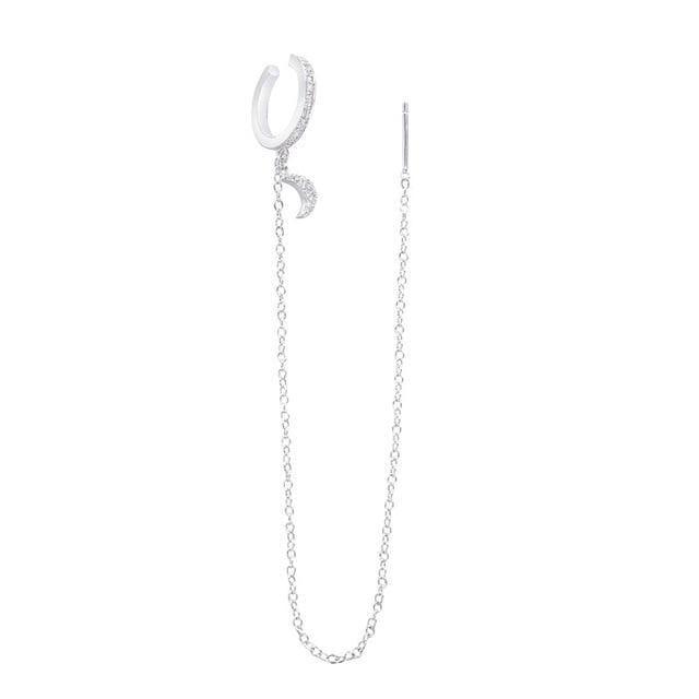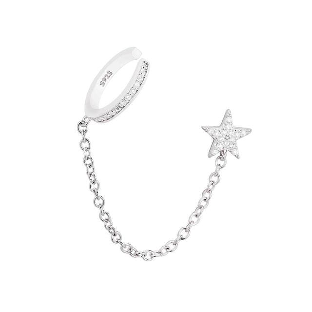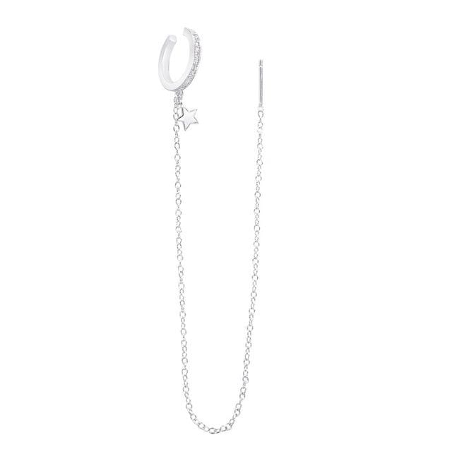 Moonmory Real 925 Sterling Silver Wedding Earring For Women With Chain Fashion Jewelry Silver Ear Cuff Brincos One piece