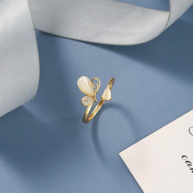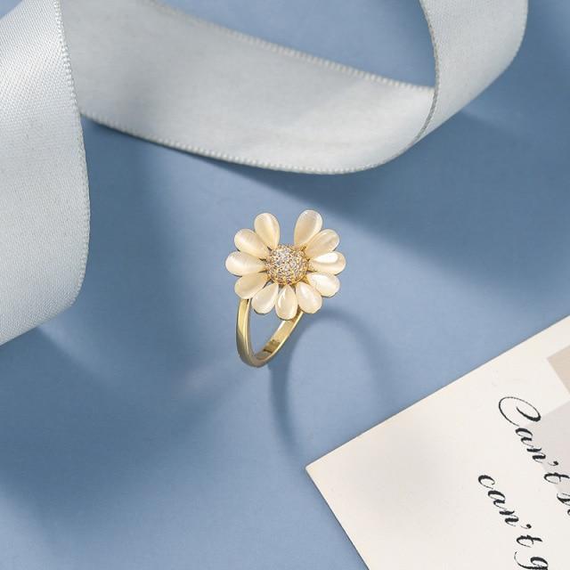 Mori's Opal Daisy Flower Opening Rings For Woman 2021 Korean Fashion Jewelry Party Girl‘s Elegant Gold Ring Set Accessories