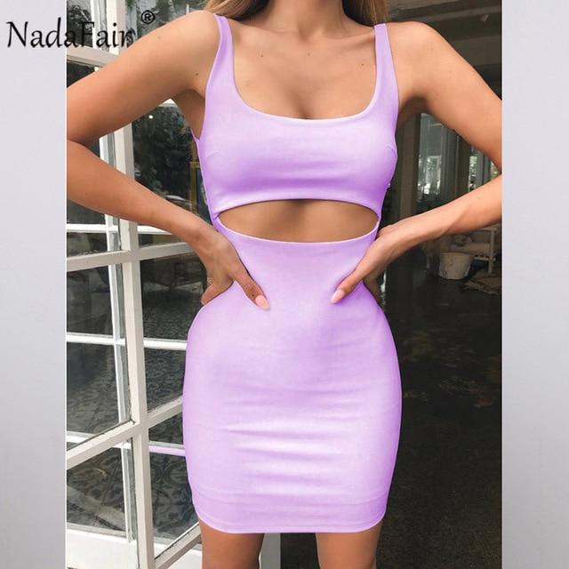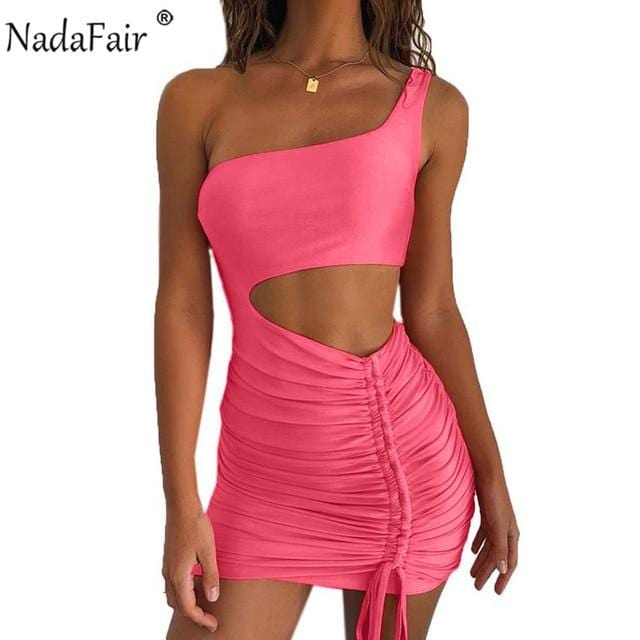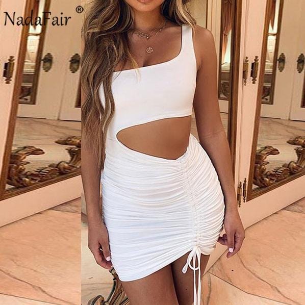 Nadafair Mini Bodycon Summer Dress Women Club Hollow Out Ruched Backless Orange White Black Party Bandage Women Sexy Dresses