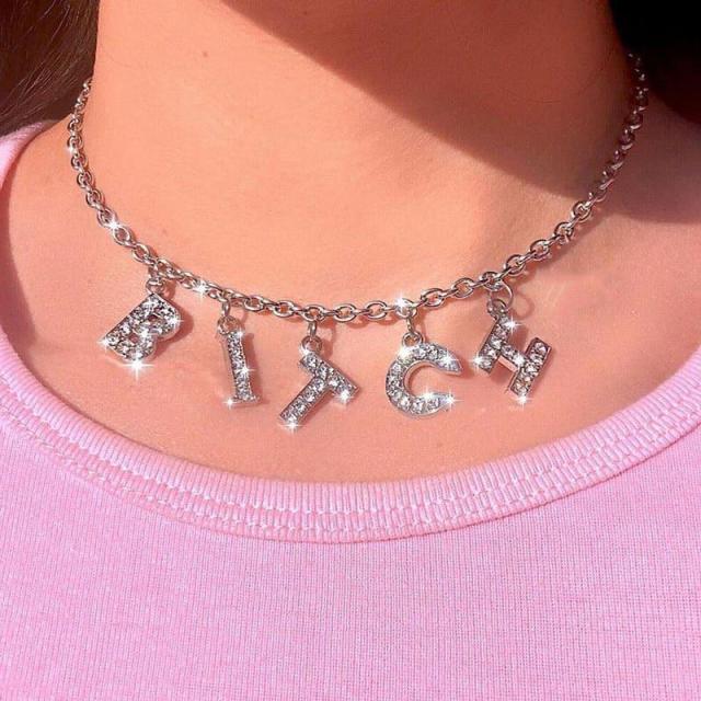 Necklace Jewelry Punk Personality Fashion Rhinestone Letter Necklace Women Gothic Statement Necklace Gifts Bijoux Chain